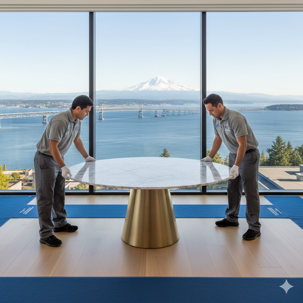 • Room-of-Choice Placement: We place your furniture exactly where you (or your designer) envision it—whether it’s a heavy executive desk for an Olympic Drive office or a delicate primary suite retreat in Canterwood.