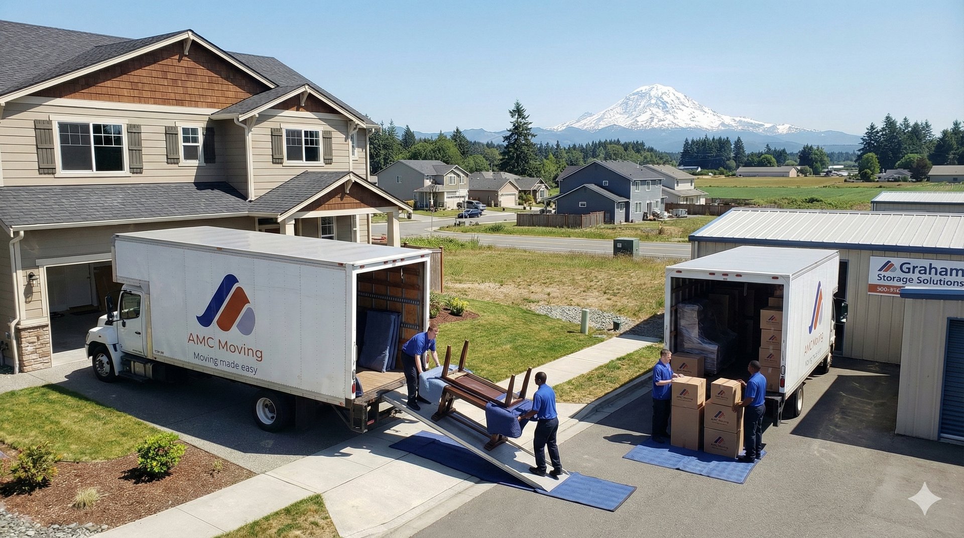 In Graham, moving isn’t just about getting from one house to another—it’s about navigating the rhythm of South Pierce County with care and precision. AMC Moving crews are background‑checked, uniformed, and trained to handle the unique blend of suburban cul‑de‑sacs, rural gravel driveways, and new construction sites that define the area. We know the traffic patterns around Bethel High School, the bottlenecks along Meridian Ave E, and the layouts of neighborhoods from The Ridge to Kapowsin. With our “White Glove” approach, every floor, wall, and piece of furniture is protected, ensuring your home remains pristine throughout the process. Choosing AMC Moving means trusting a family‑owned team that lives and works in the South Sound, delivering neighborly care and professional reliability so your transition into Graham feels seamless from the very first day.