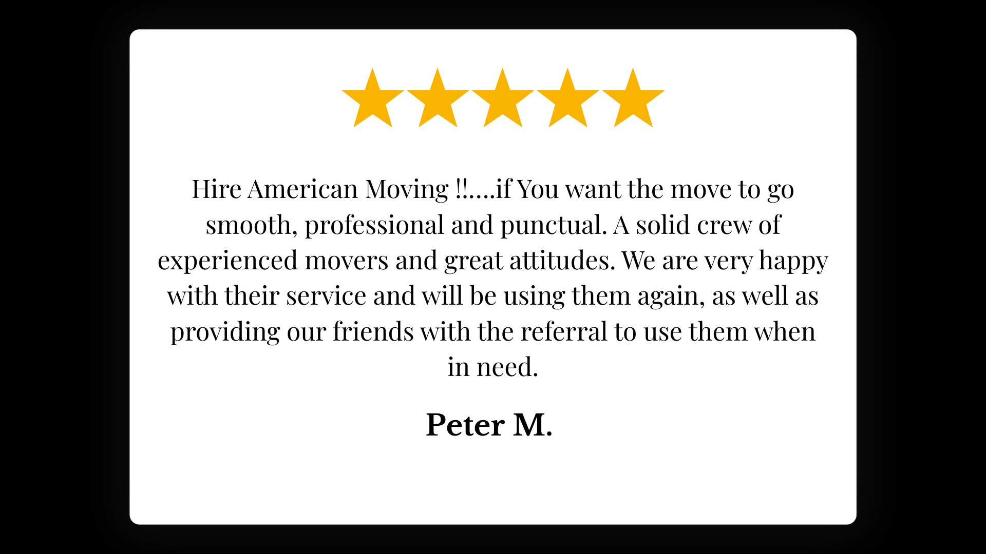 Read authentic reviews from our satisfied clients to see how American Moving Company has made their moves stress-free and seamless. Trust their experiences to guide your next move with us.